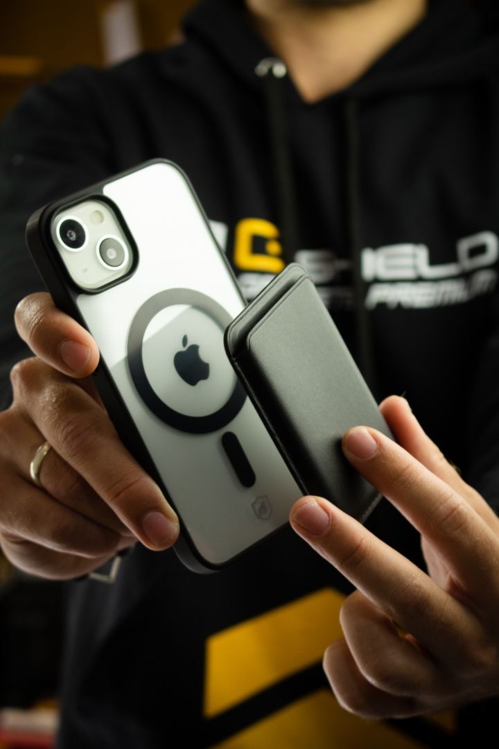 Elegante, prática e minimalista — esta carteira magnética em couro premium foi projetada para se acoplar perfeitamente à parte traseira do iPhone através do sistema MagSafe, oferecendo praticidade e estilo em um único acessório.
