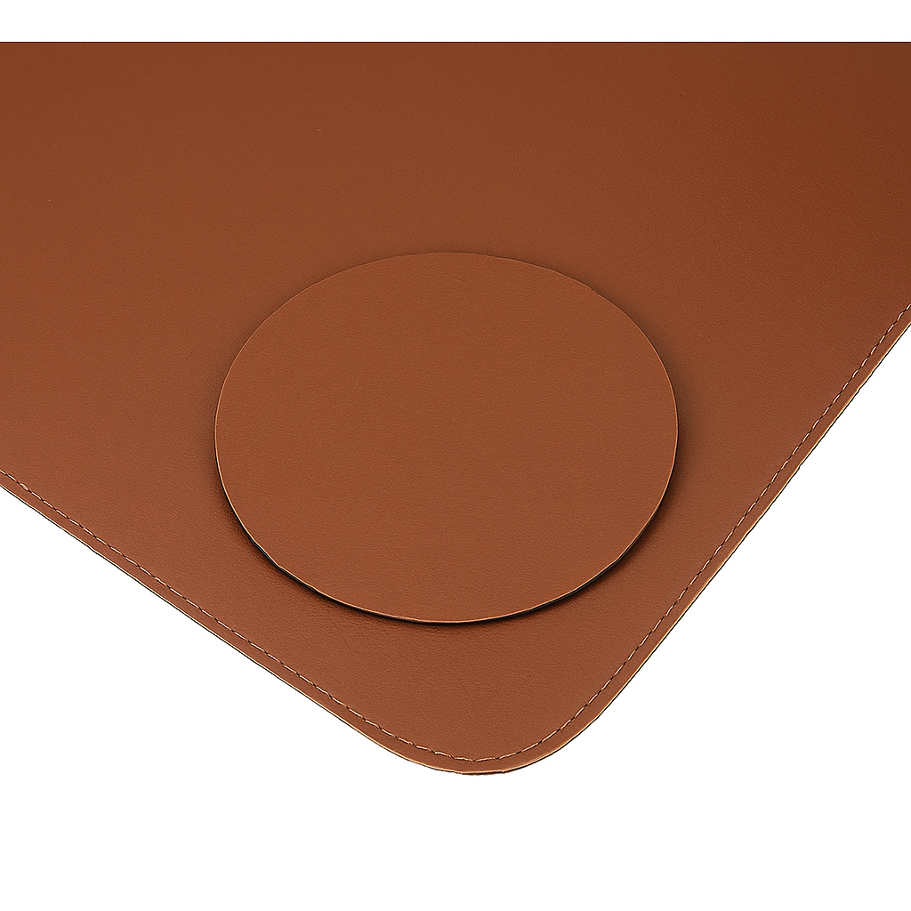 Fabricado em couro ecológico de alta qualidade, este Desk Pad oferece uma superfície confortável e estável, ideal para teclado, notebook e mouse — com deslizamento suave e precisão nos movimentos.