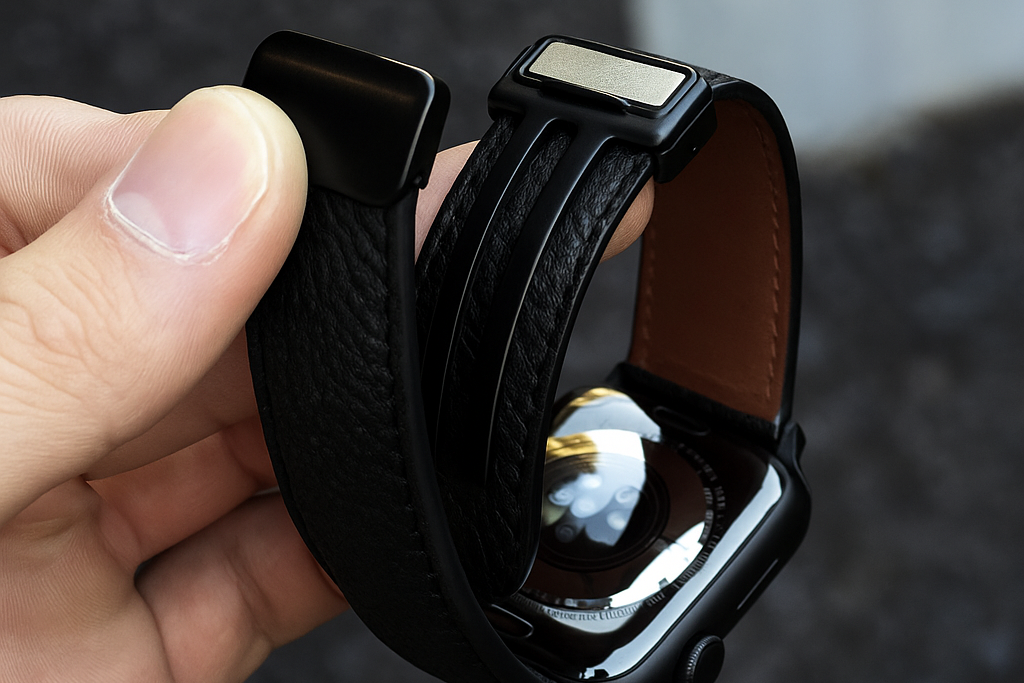 O fecho magnético duplo garante ajuste preciso e fechamento seguro, proporcionando uma experiência de uso leve e confortável durante todo o dia. O design curvado se adapta naturalmente ao pulso, tornando-a perfeita para qualquer ocasião — do escritório ao lifestyle urbano.
