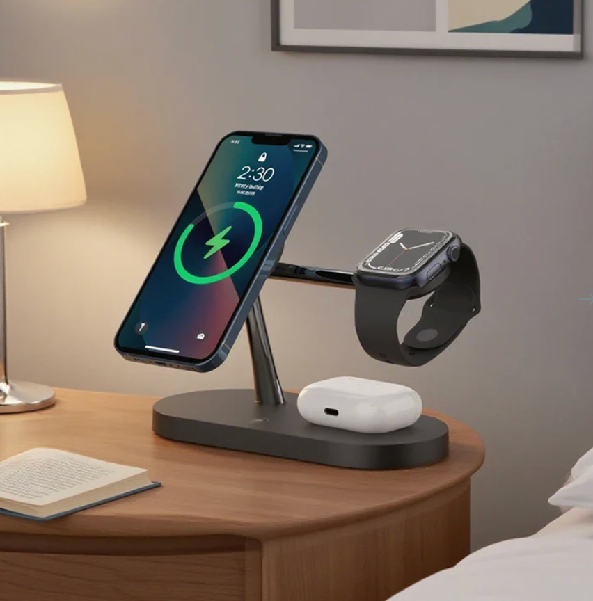 👉 Tenha mais praticidade e sofisticação no seu dia a dia com a Base de Carregamento 3 em 1 Magnética.